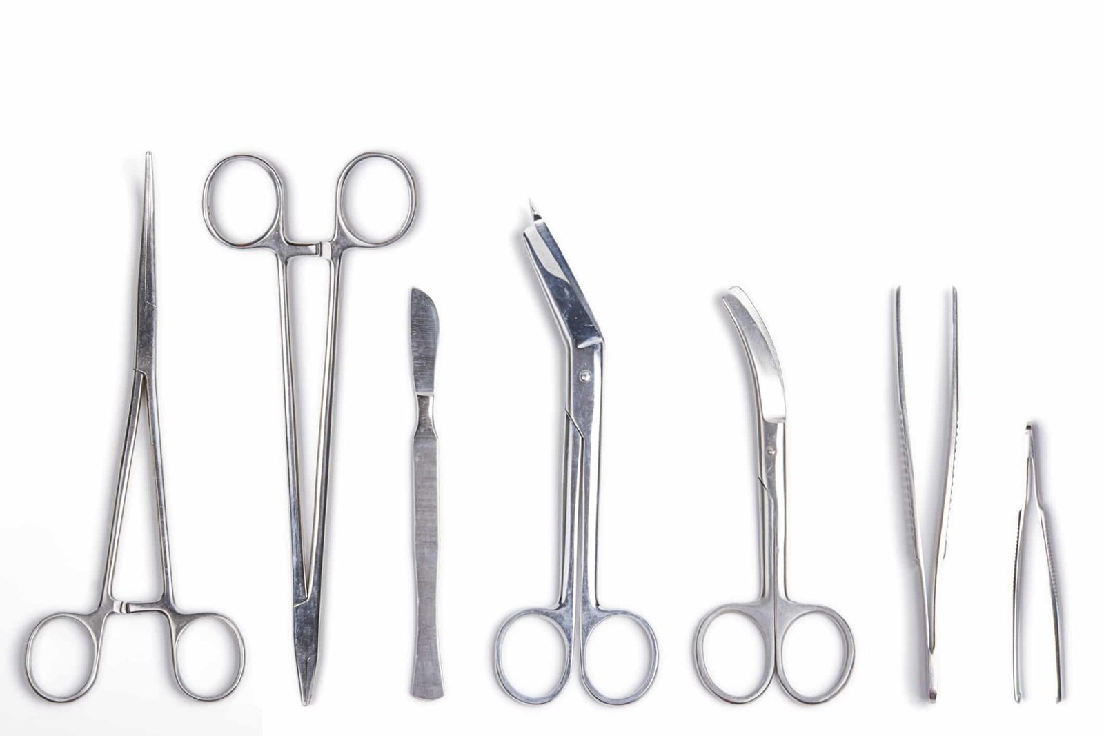 Surgeon tools – scalpel, forceps, clamps, scissors – isolated